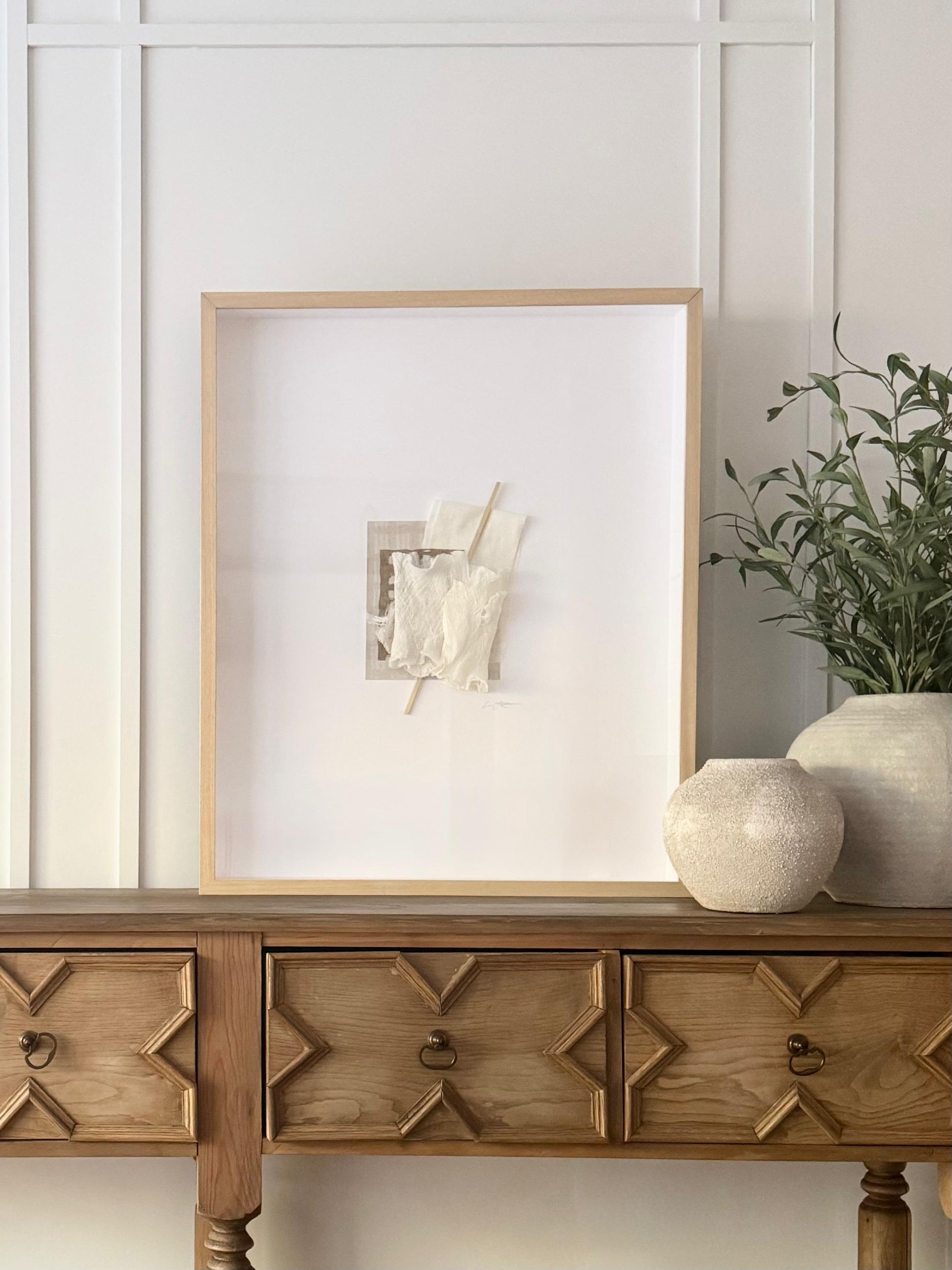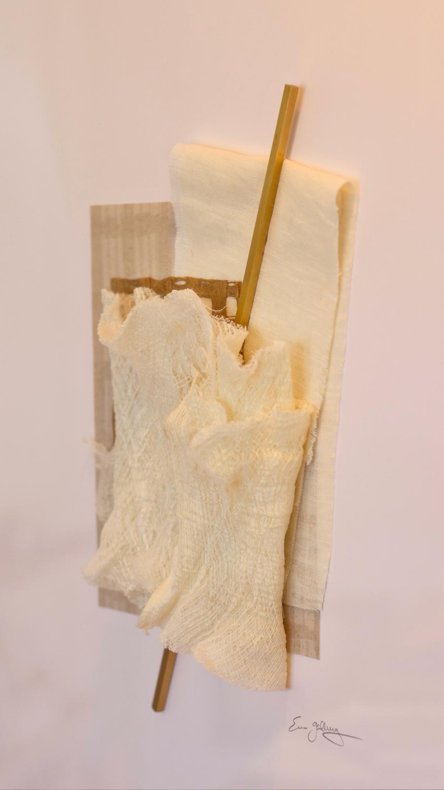Cuadro elaborado con una mezcla de papeles texturados y latón. Cada cuadro es una pieza única, ya que se elabora de manera artesanal.