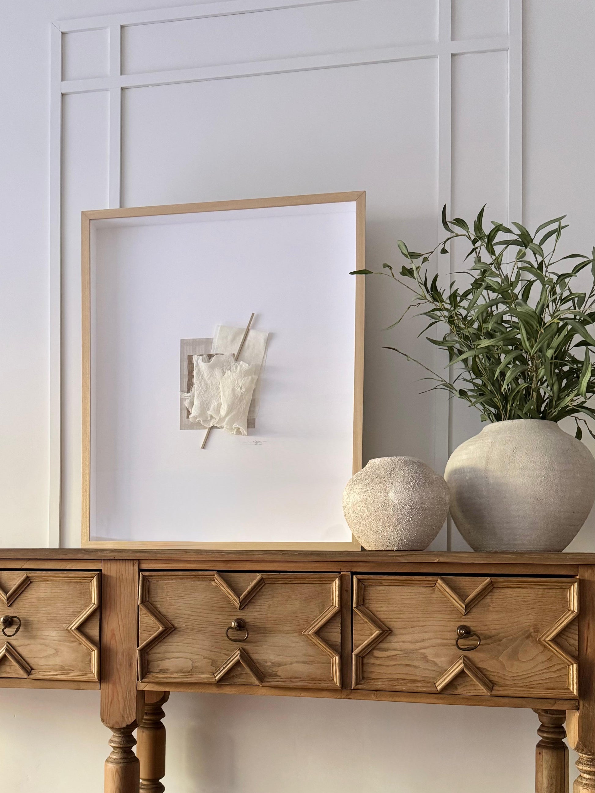 Observaciones: Enmarcación tipo caja vitrina con marco de madera. Grosor del marco de 8cm.